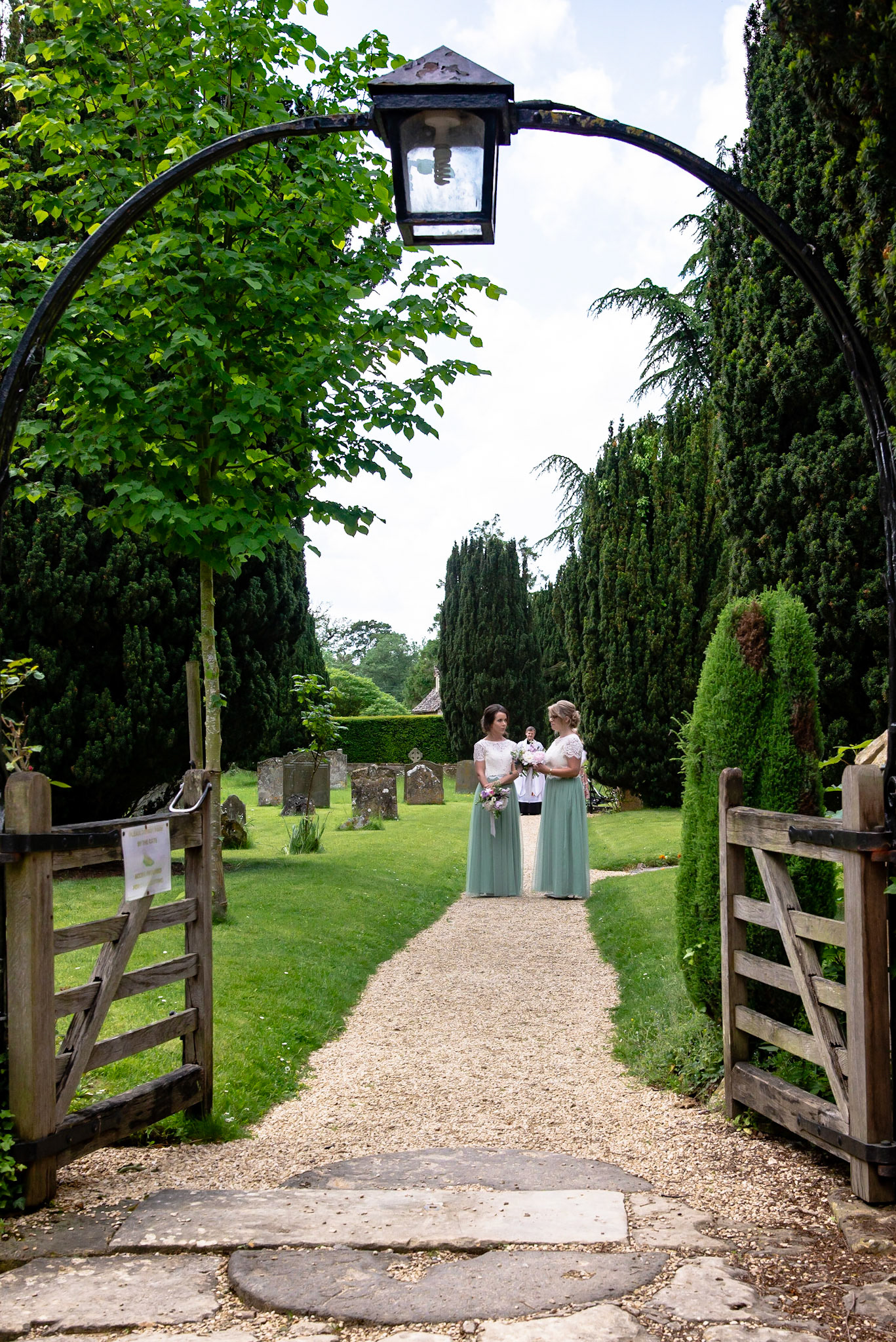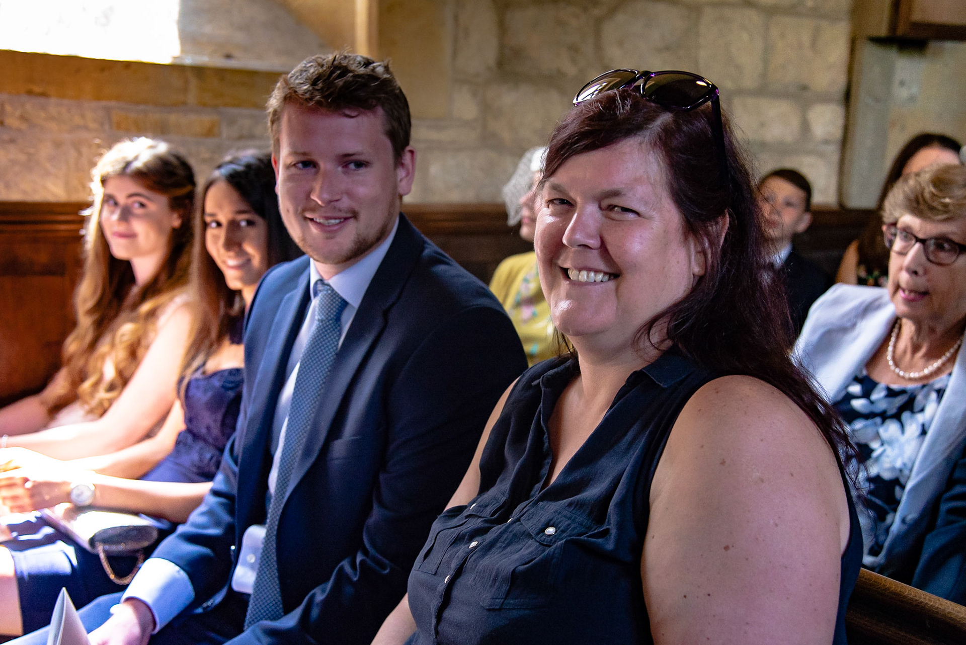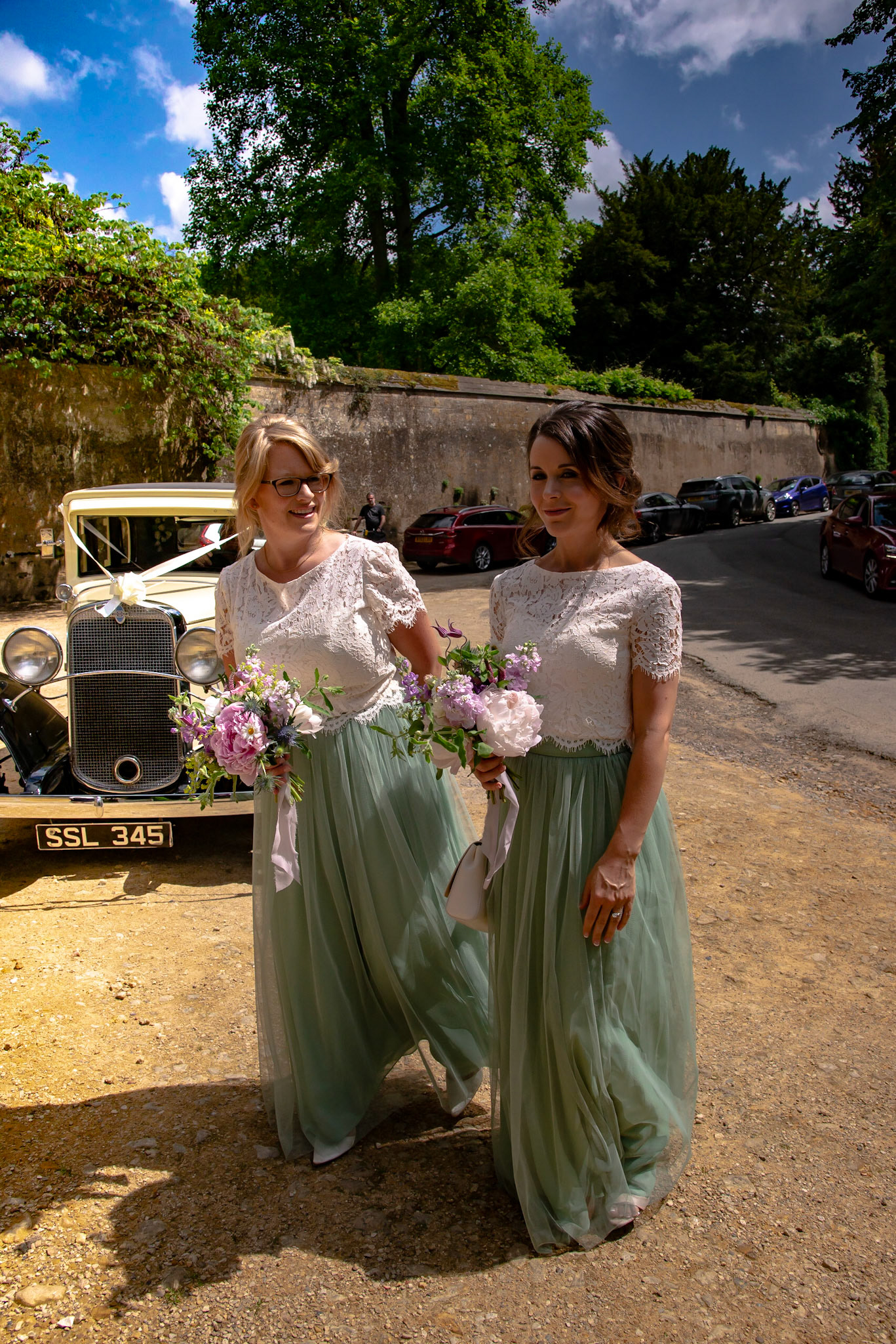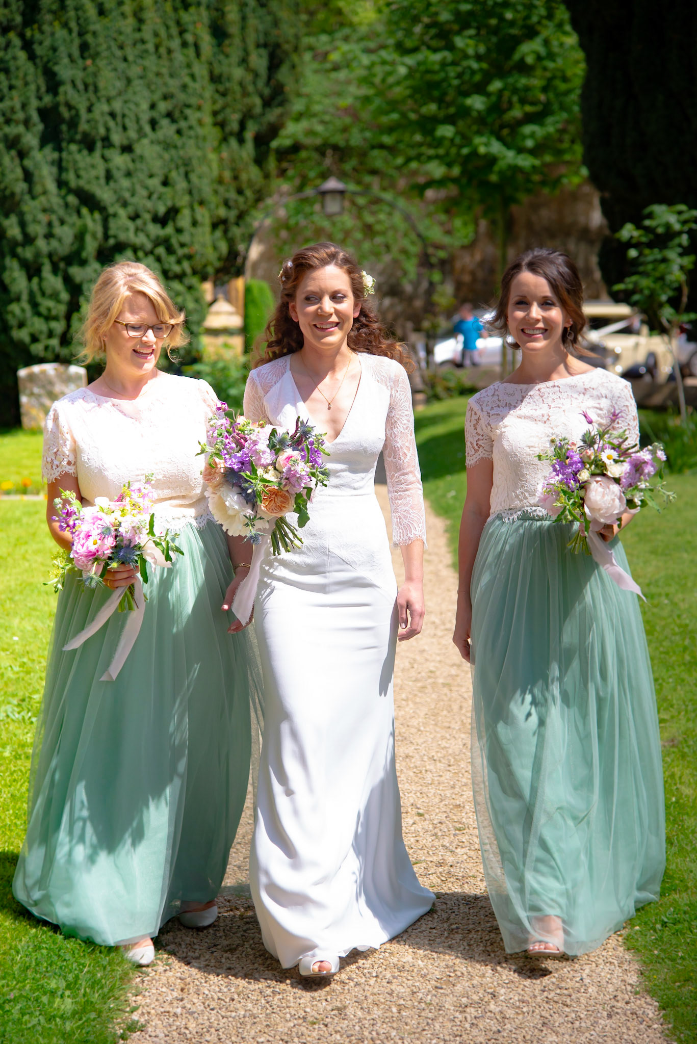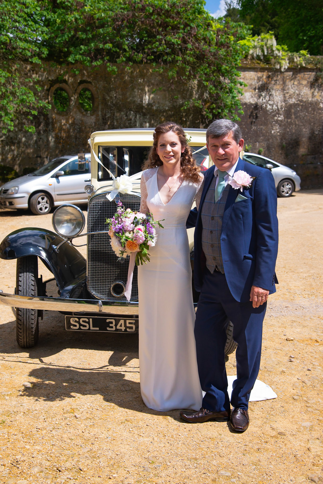 Photos of the guests arriving at the church, Matt in the church and Naomi arriving in the car.