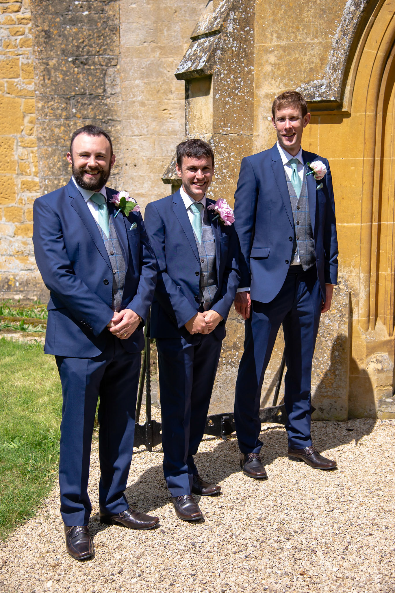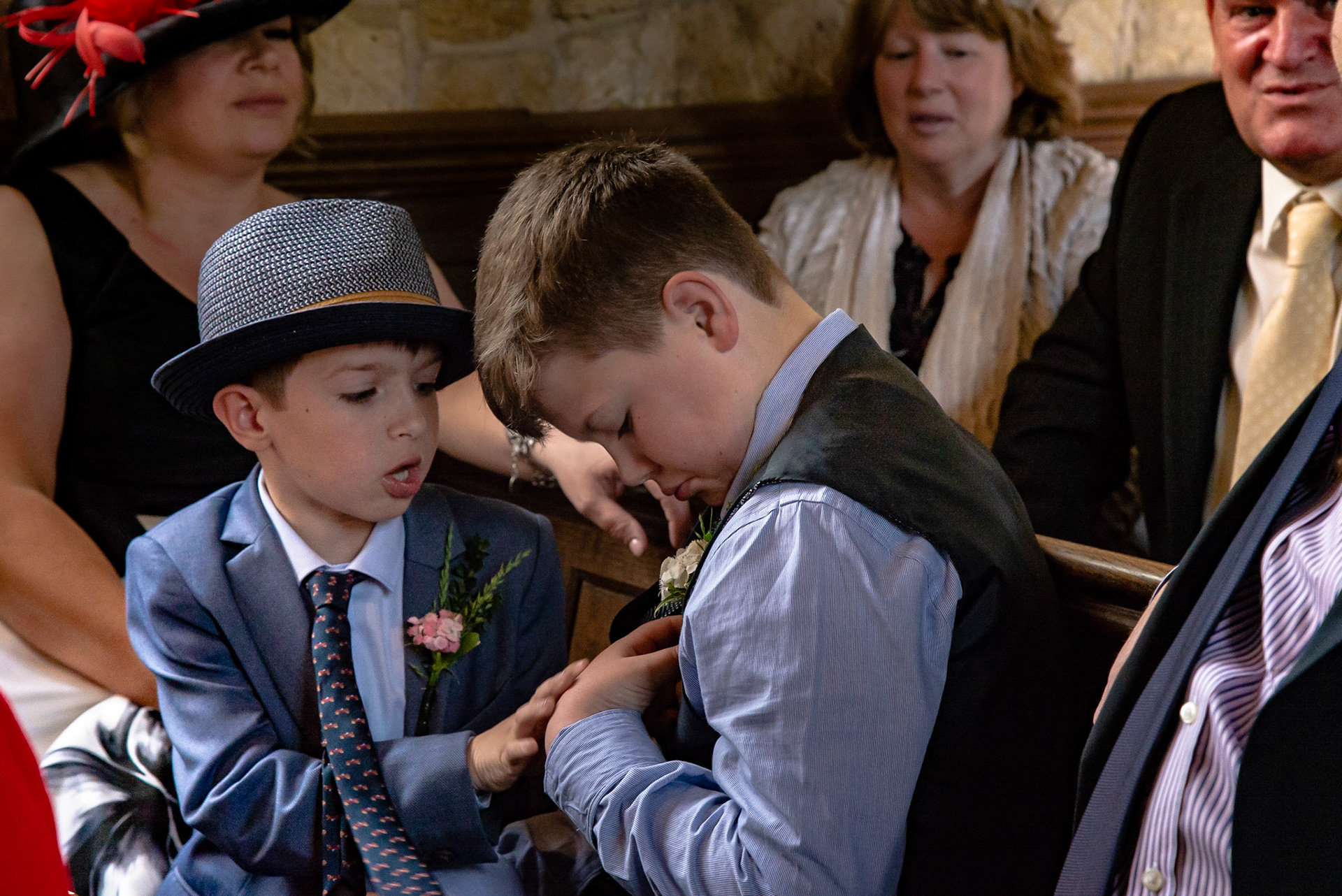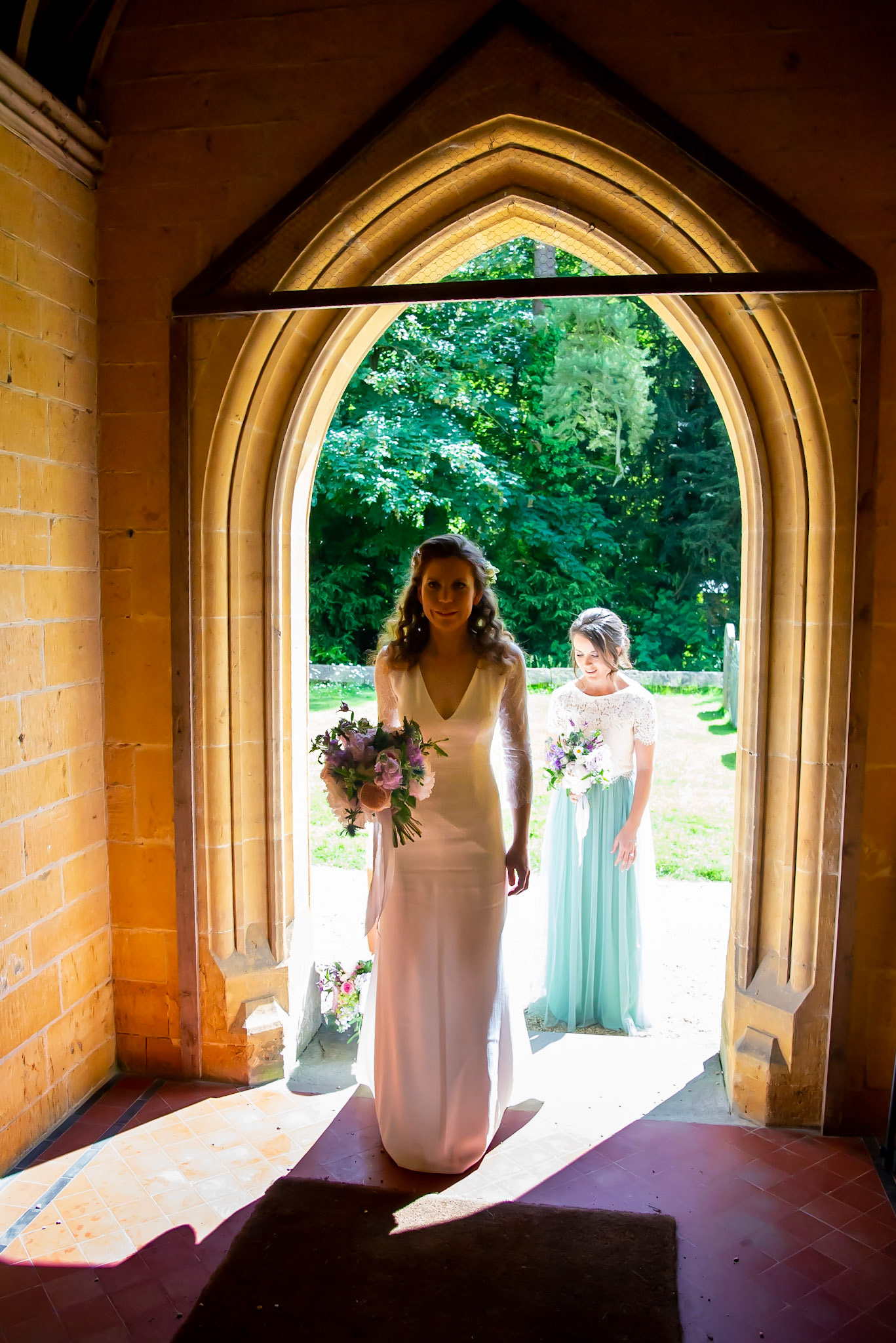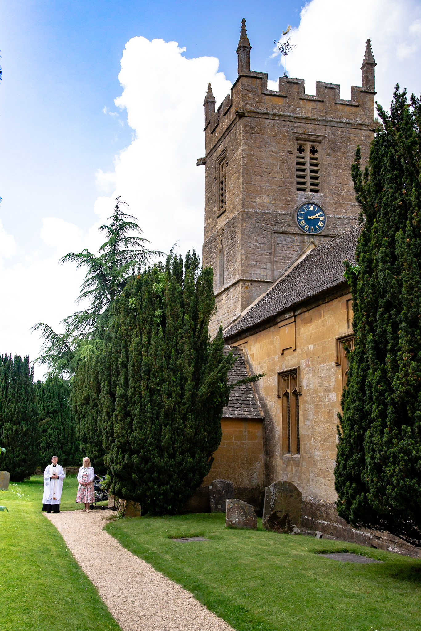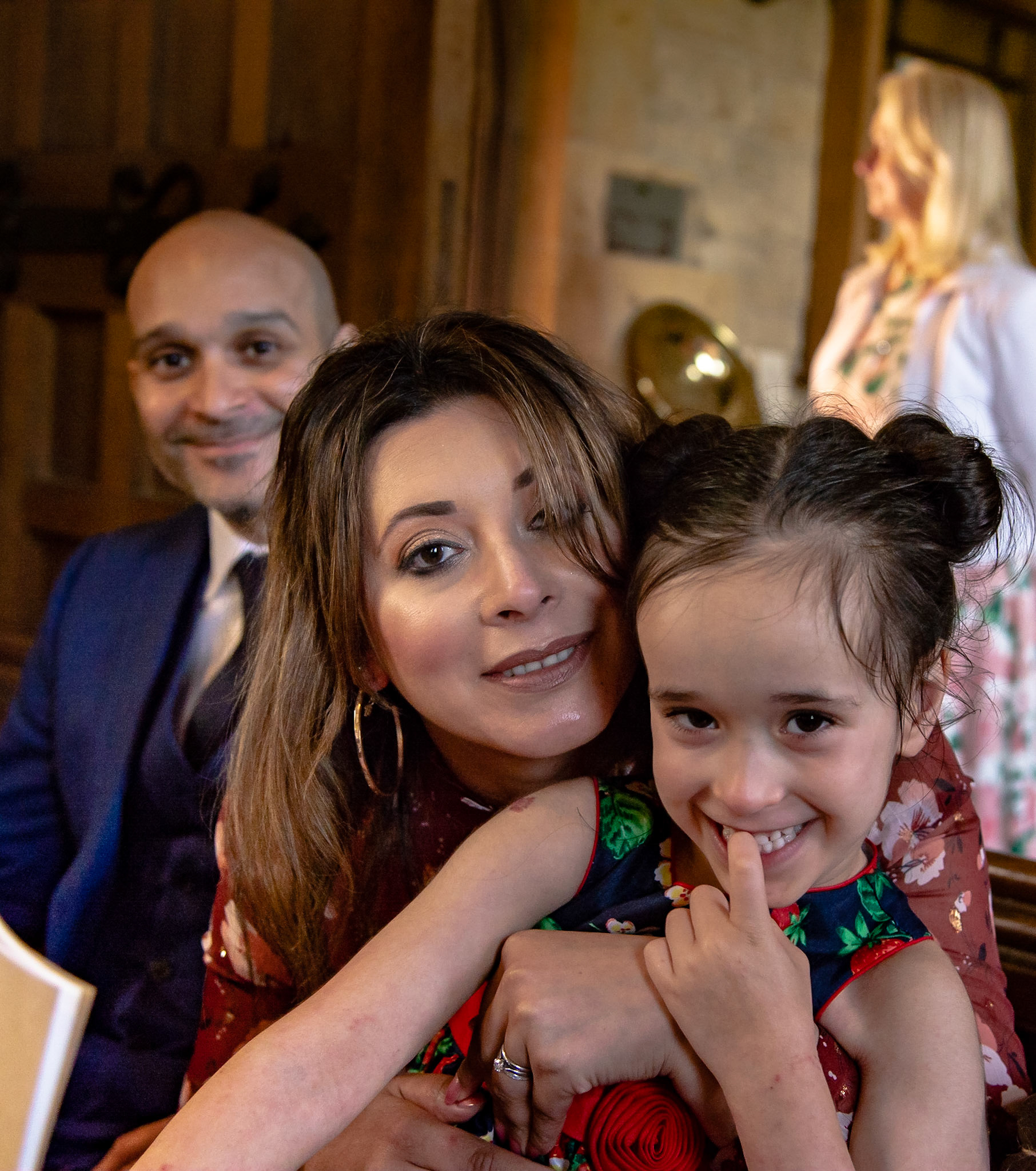Photos of the guests arriving at the church, Matt in the church and Naomi arriving in the car.