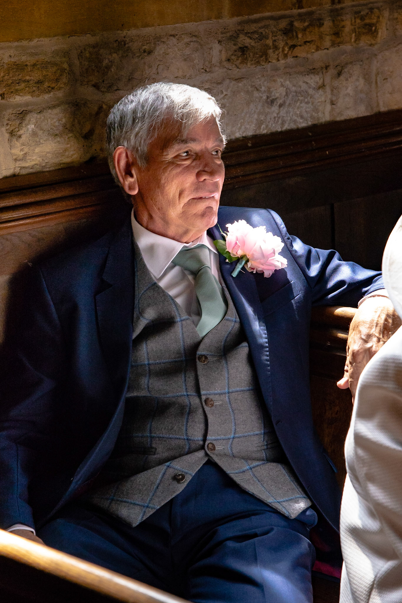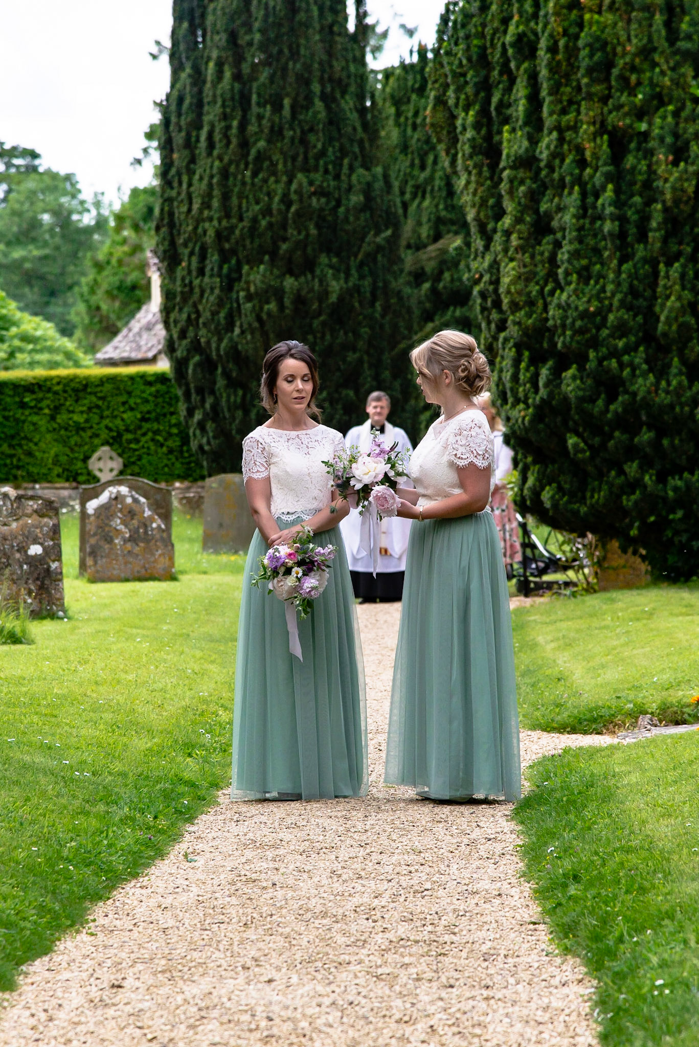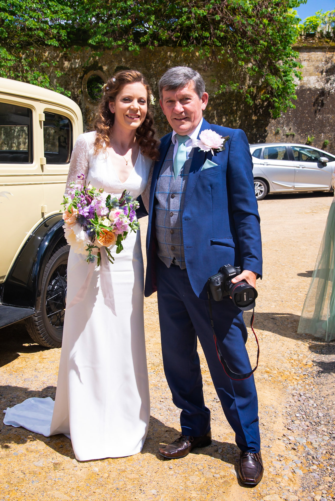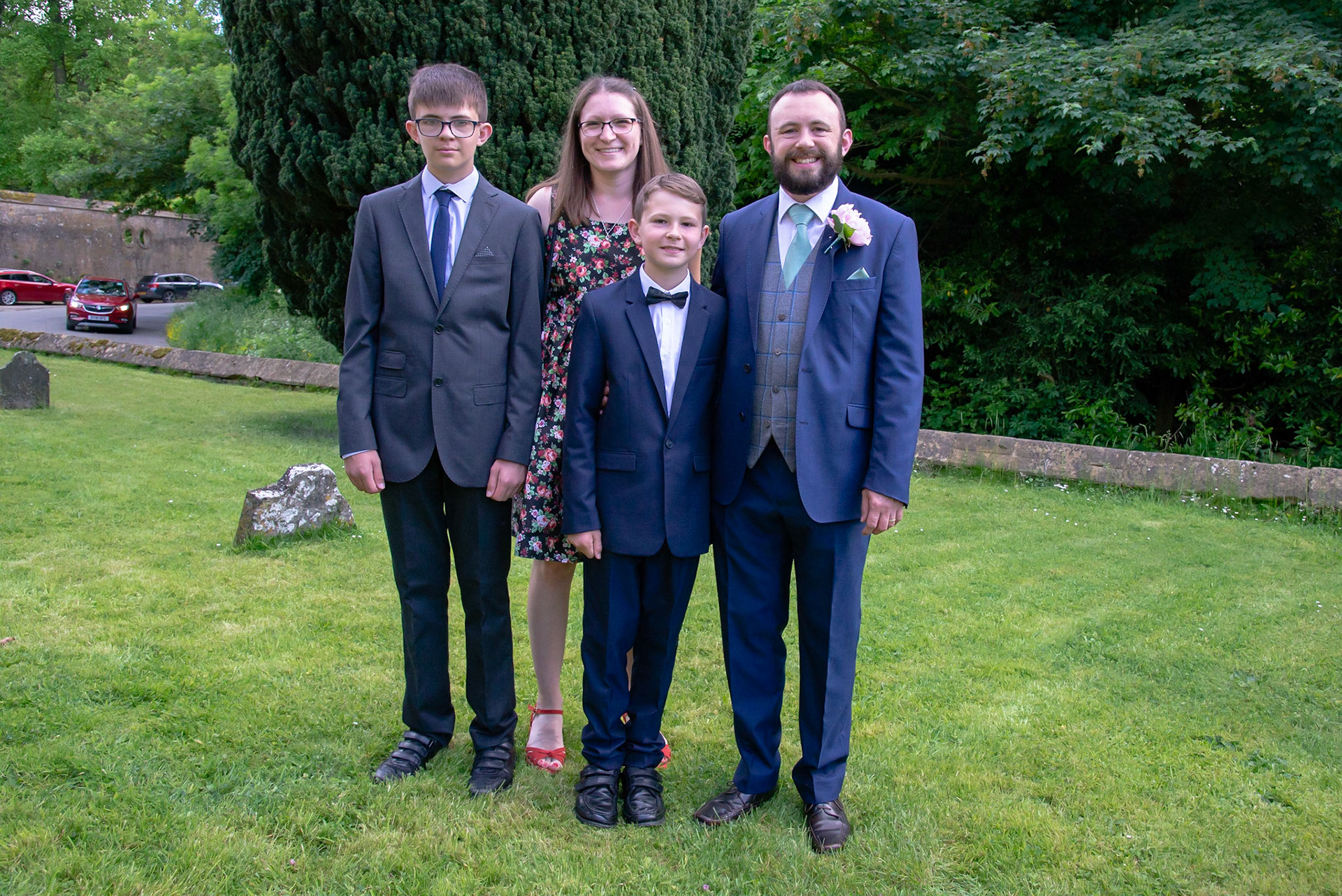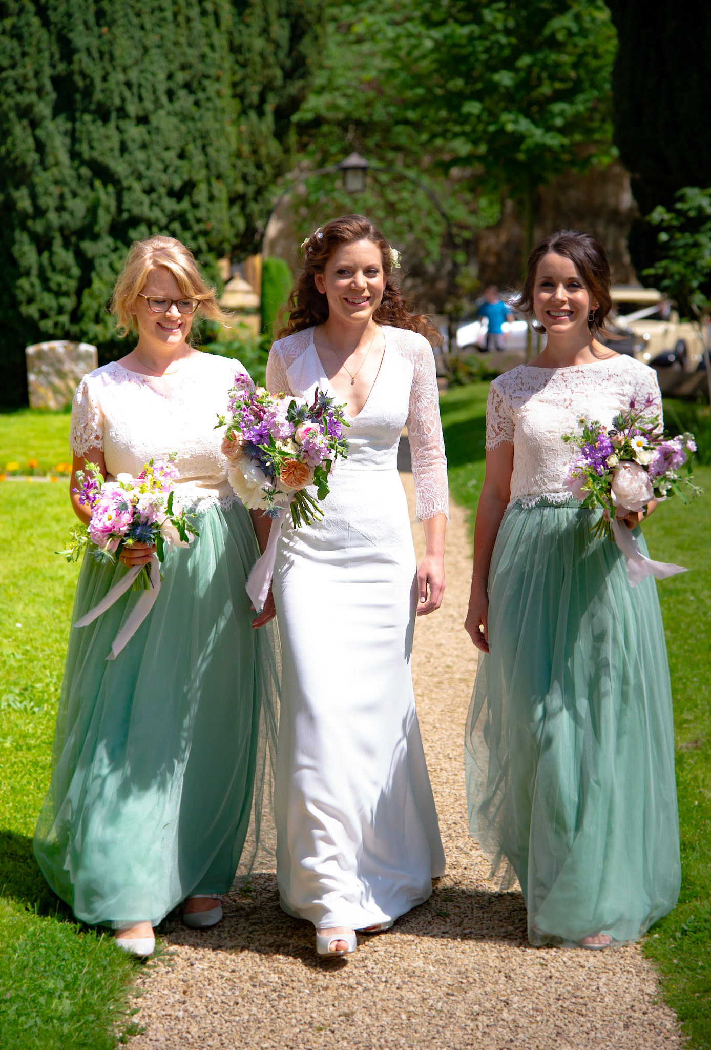 Photos of the guests arriving at the church, Matt in the church and Naomi arriving in the car.