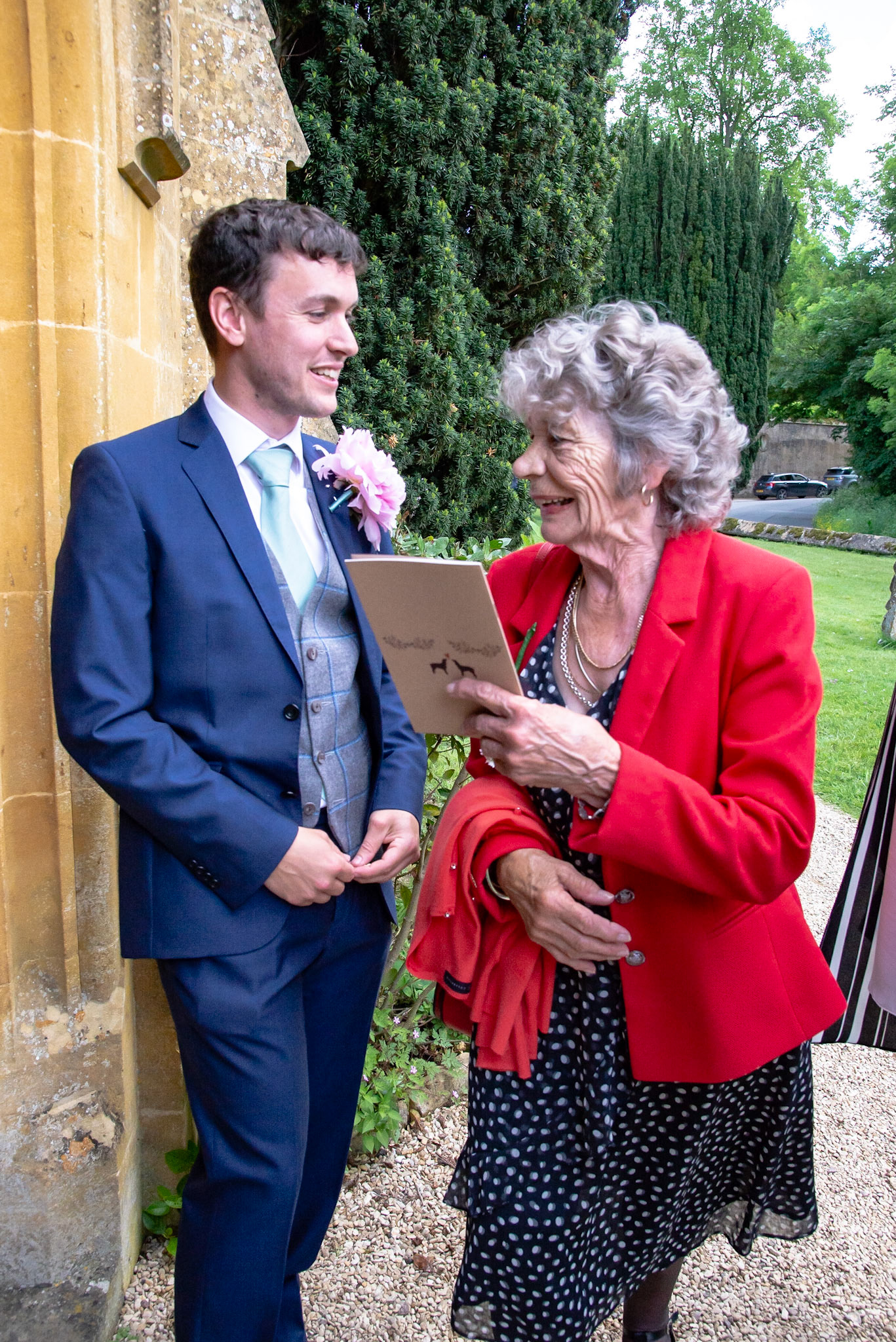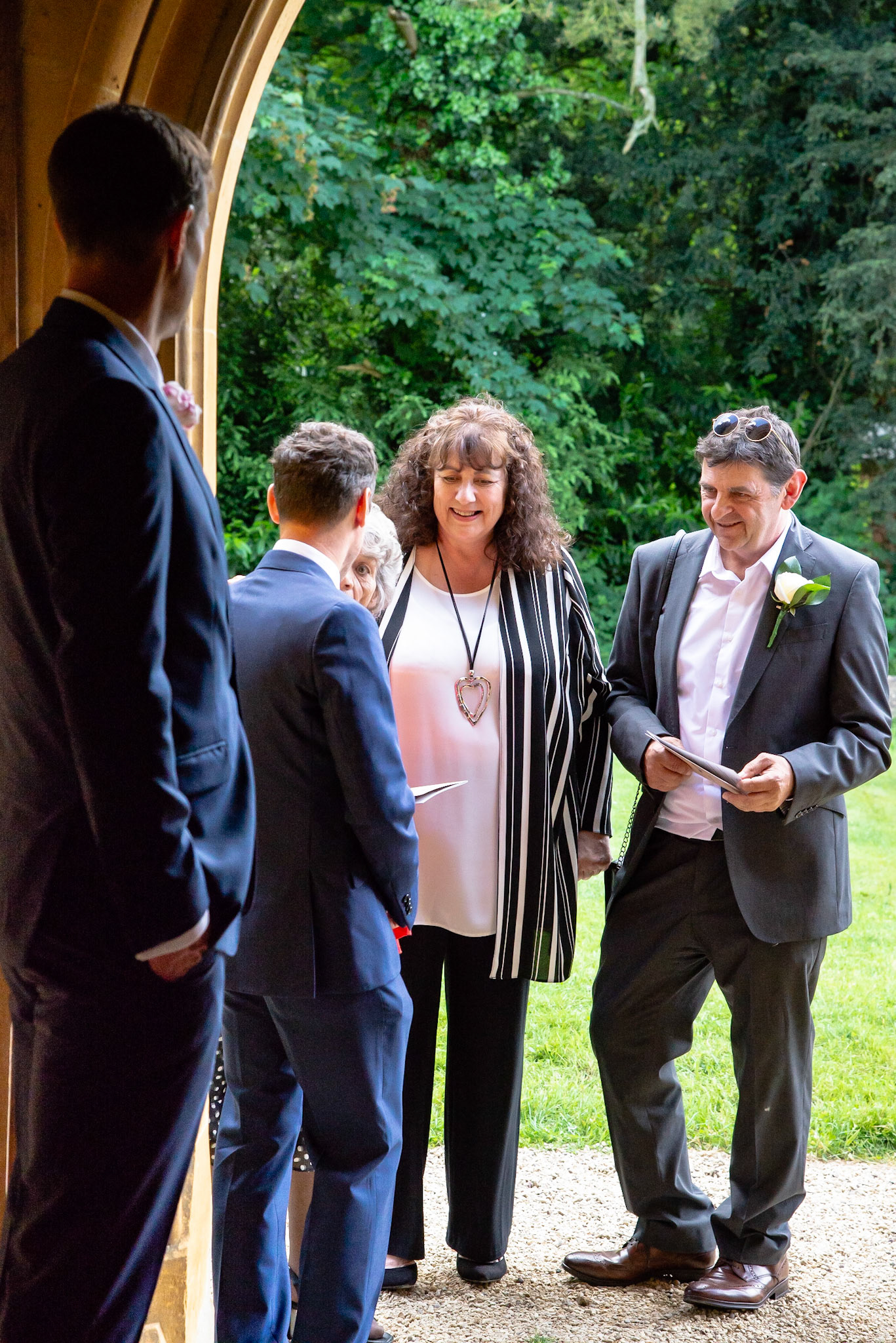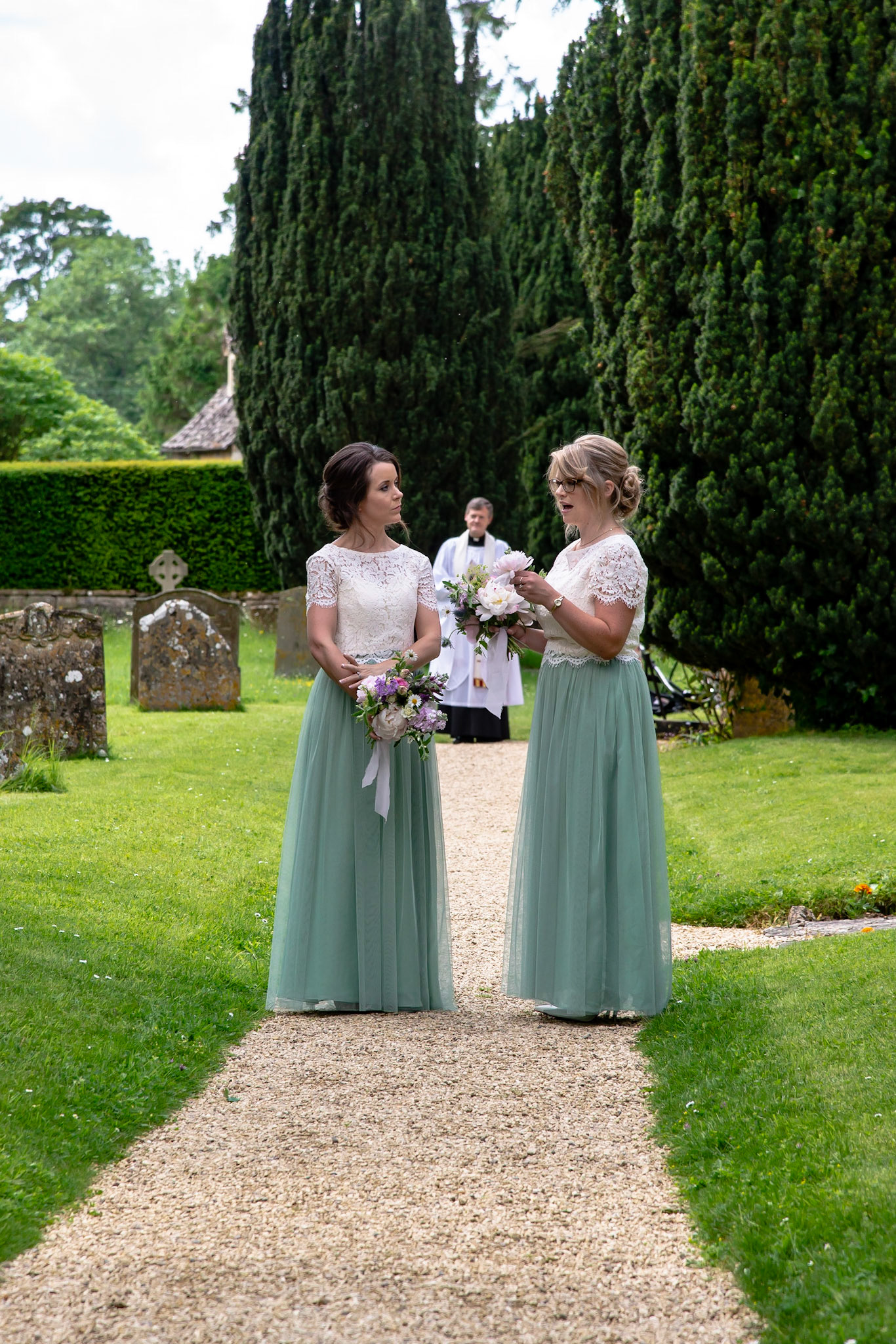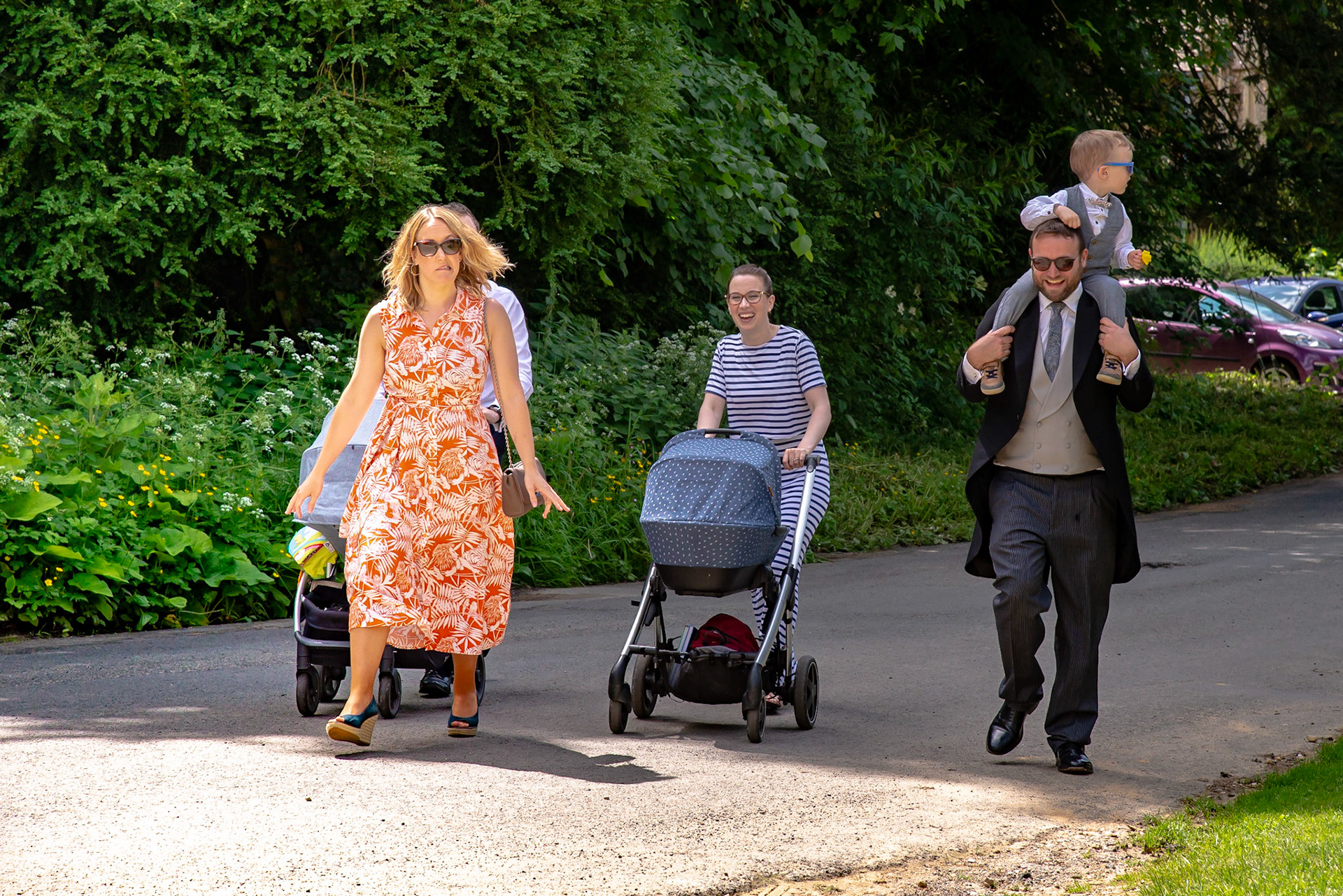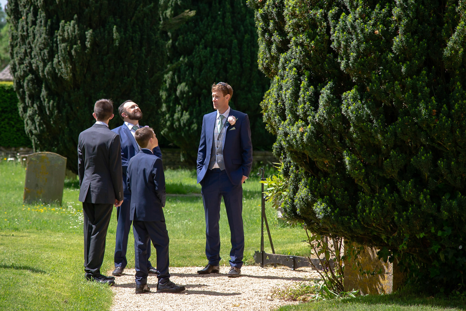 Photos of the guests arriving at the church, Matt in the church and Naomi arriving in the car.