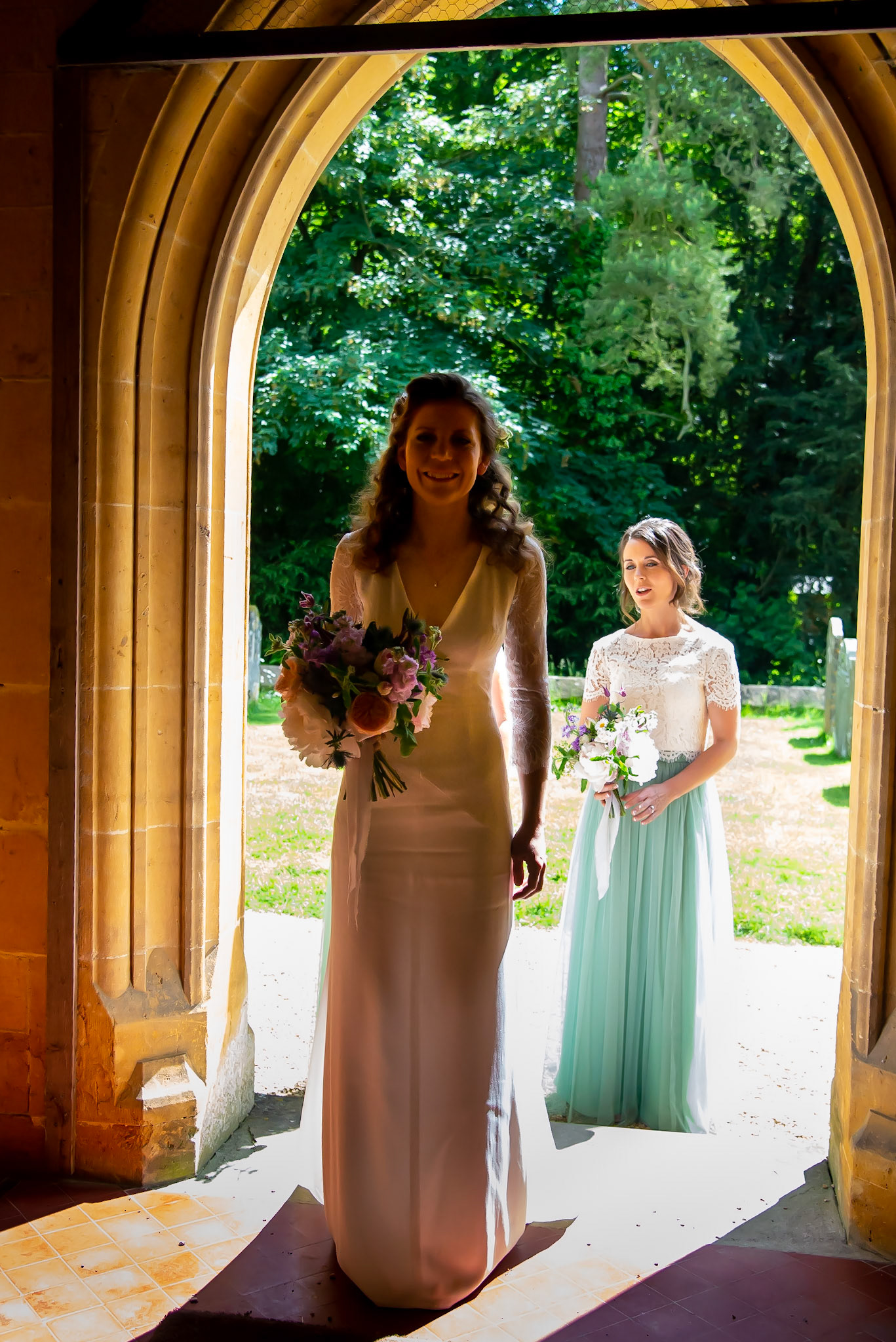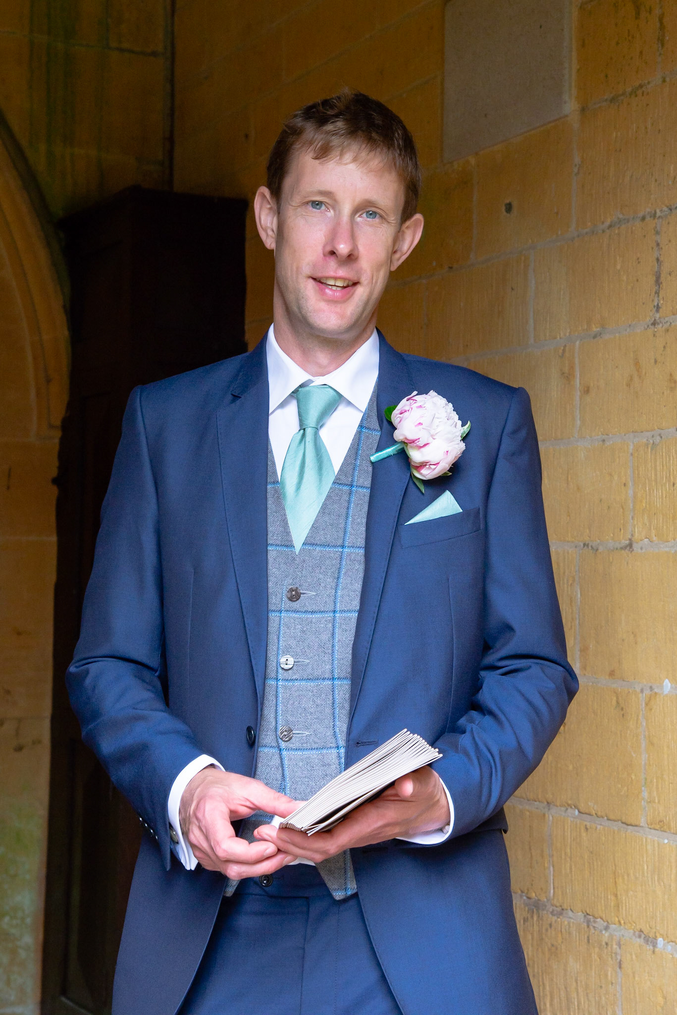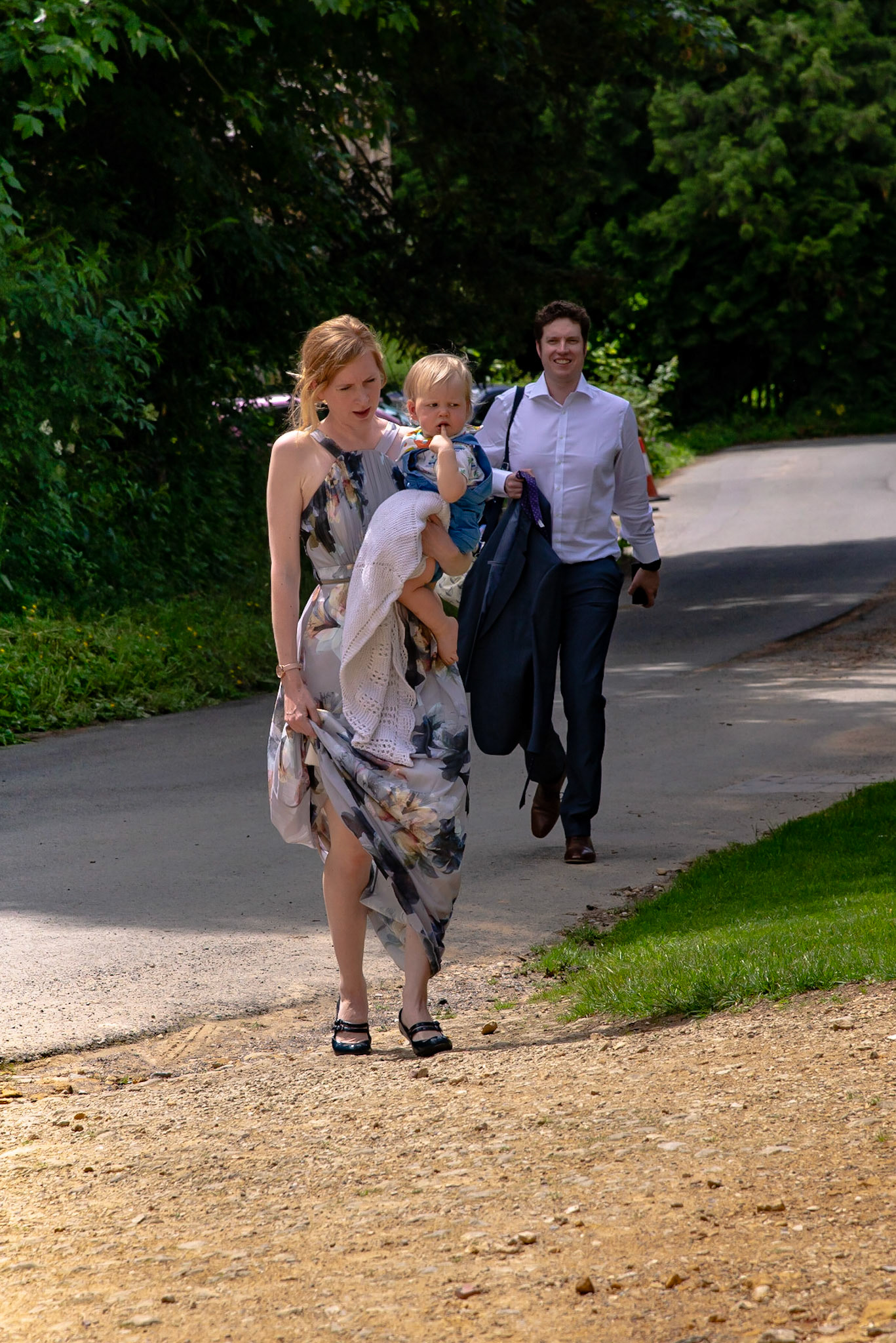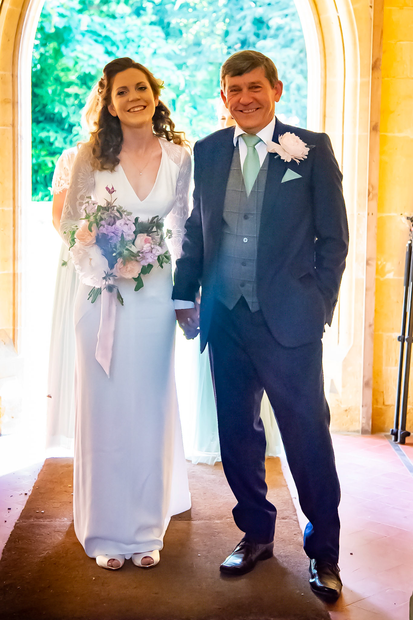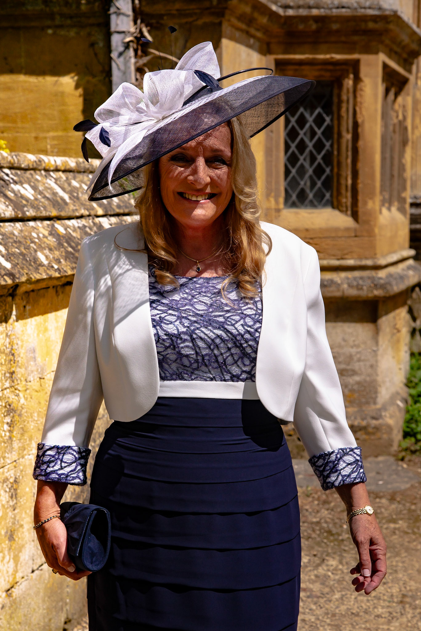 Photos of the guests arriving at the church, Matt in the church and Naomi arriving in the car.