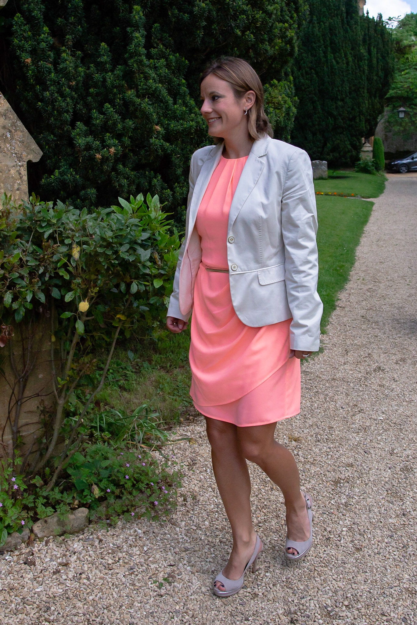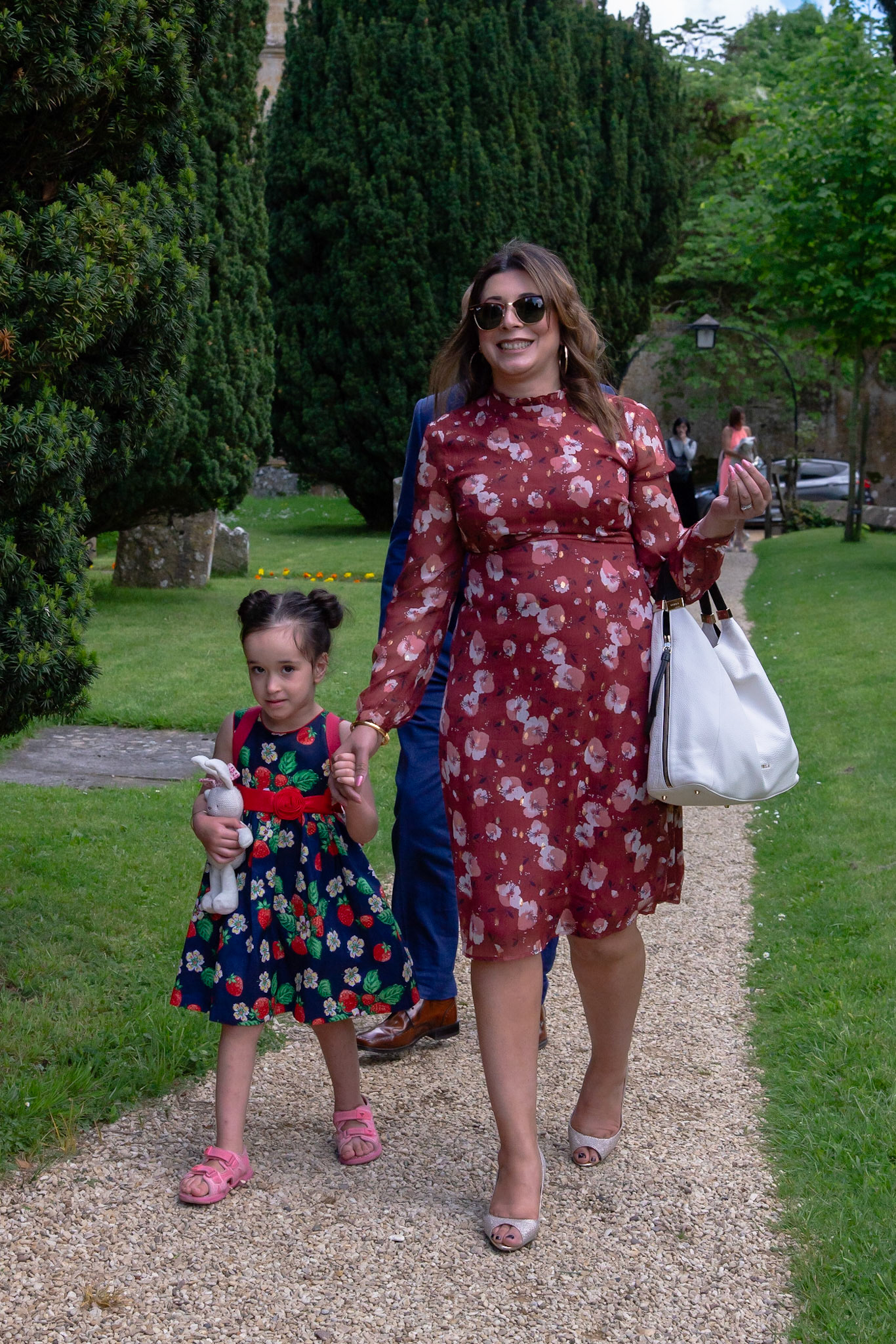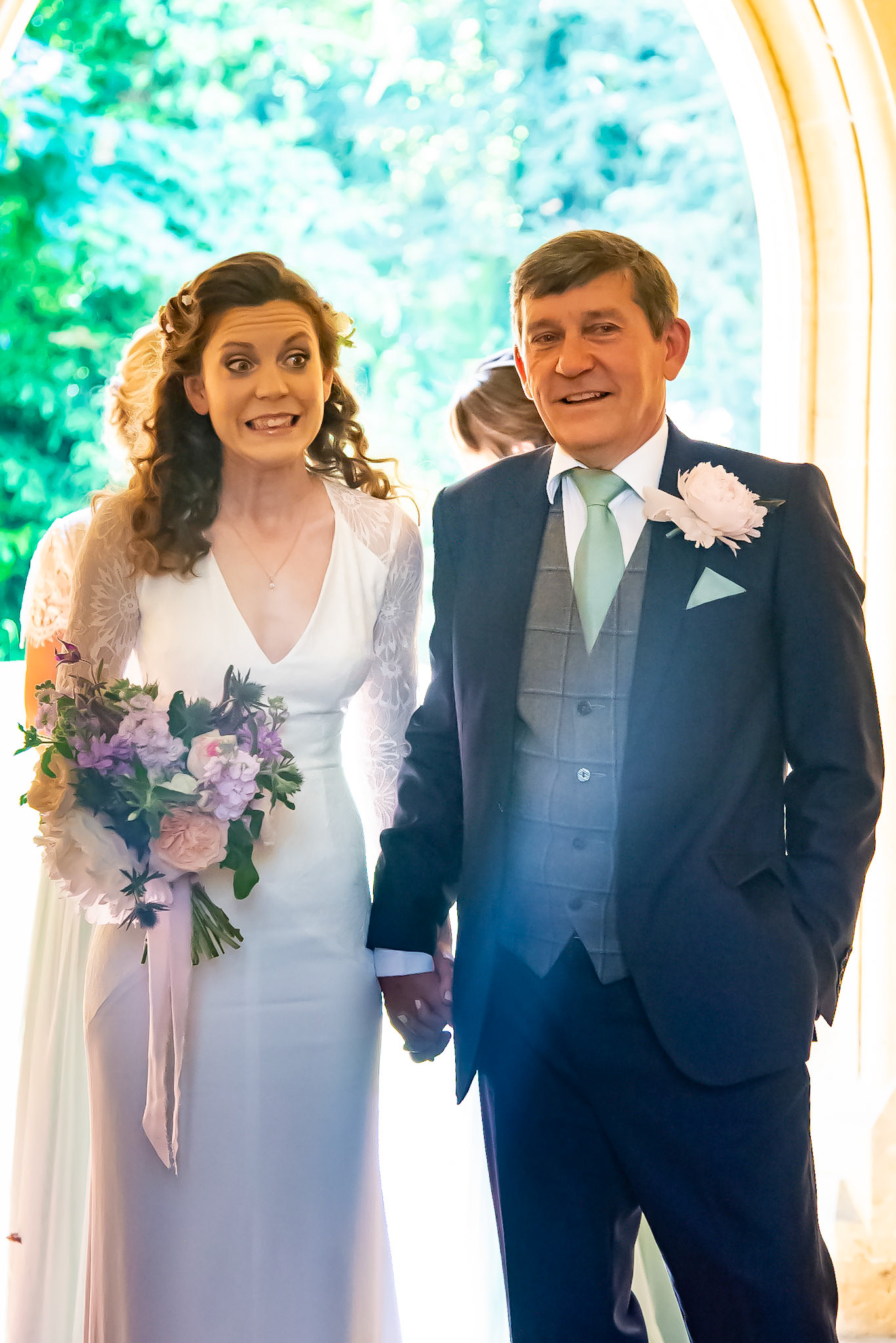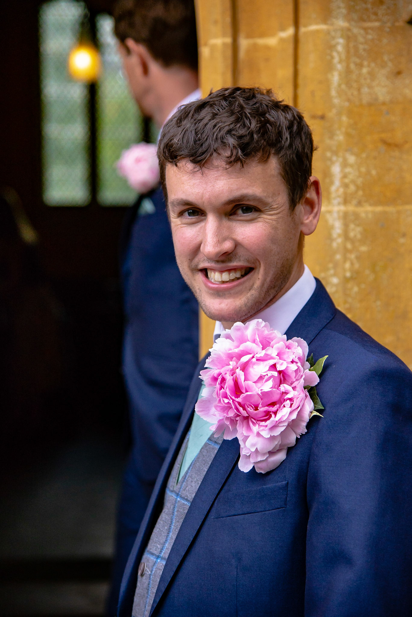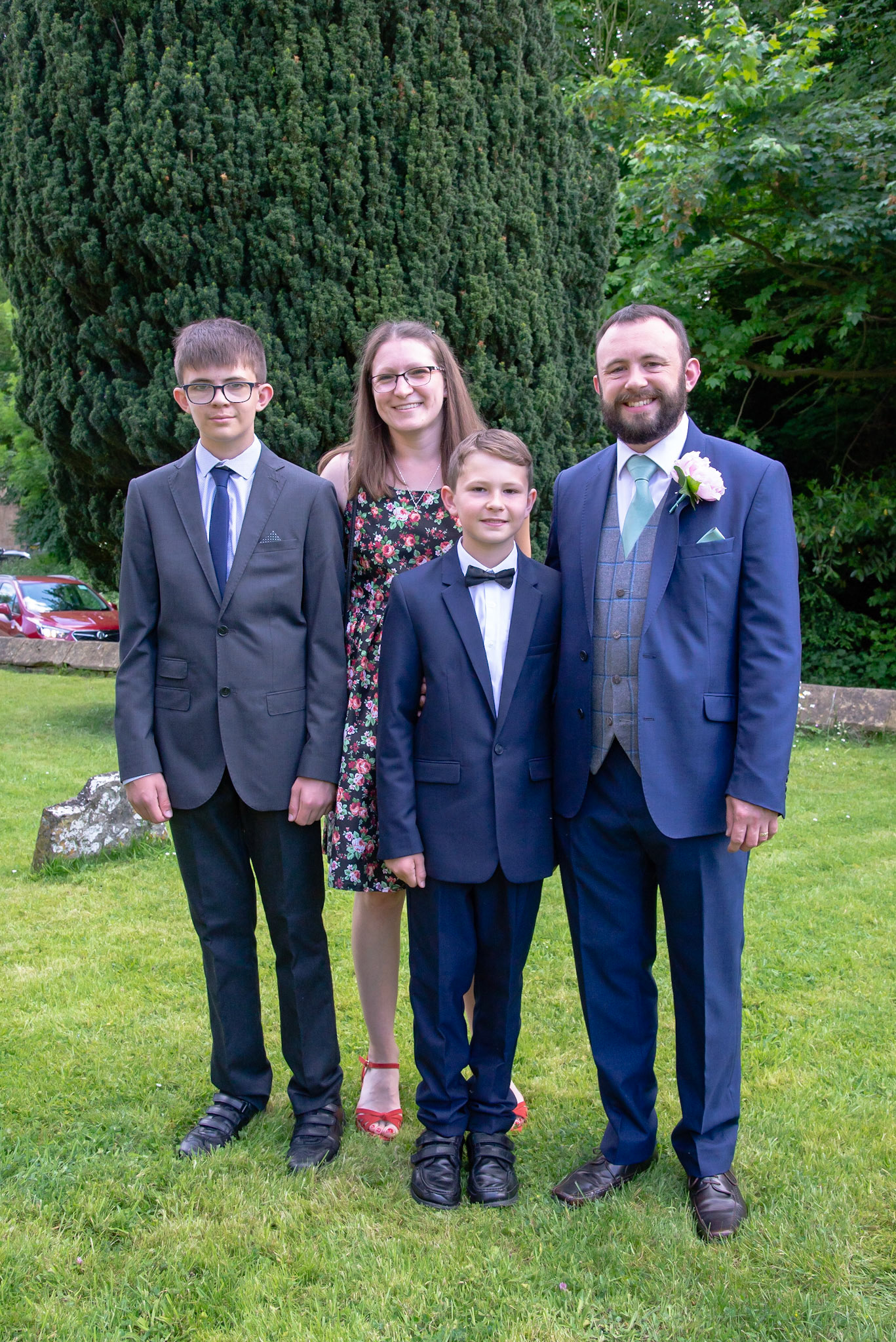 Photos of the guests arriving at the church, Matt in the church and Naomi arriving in the car.