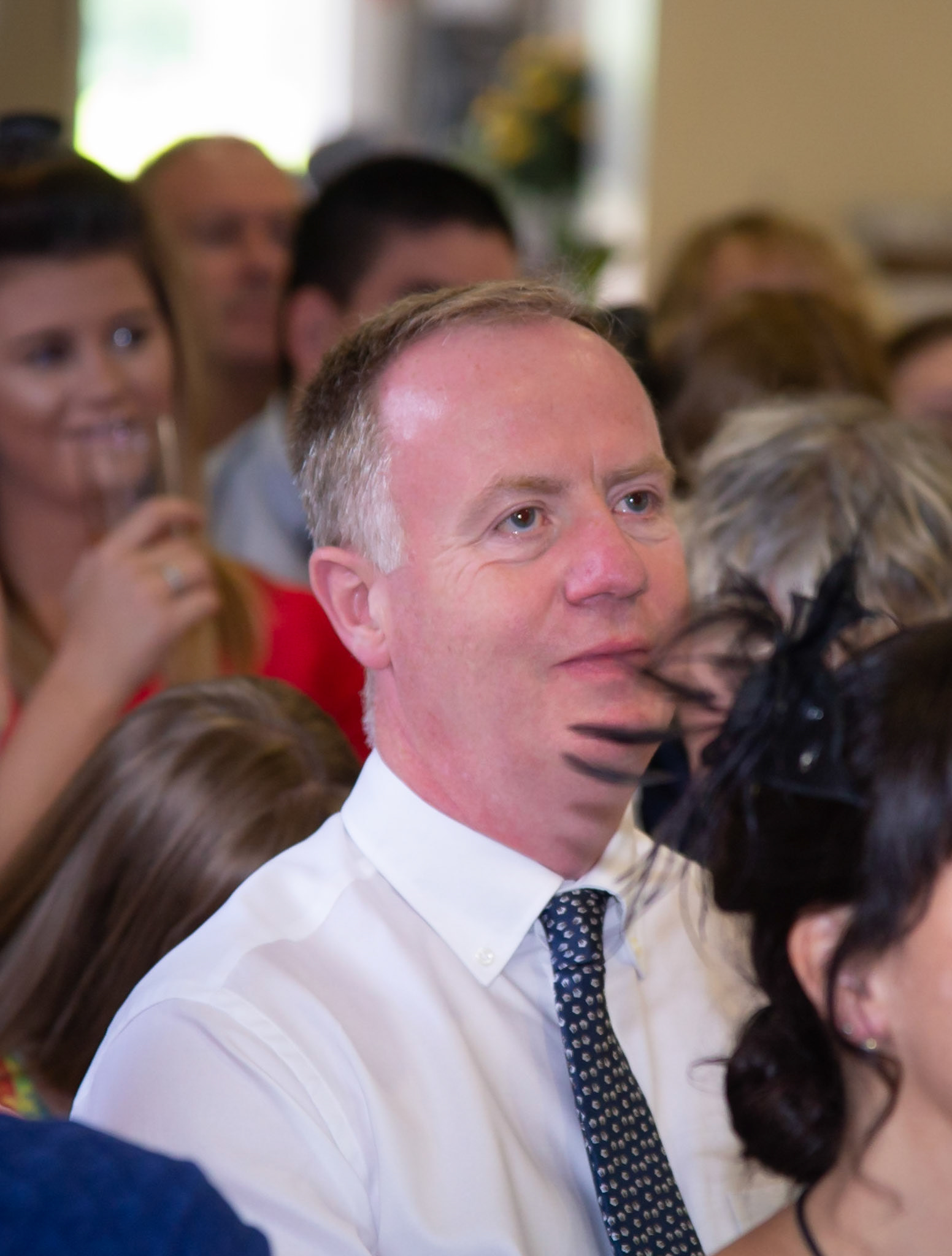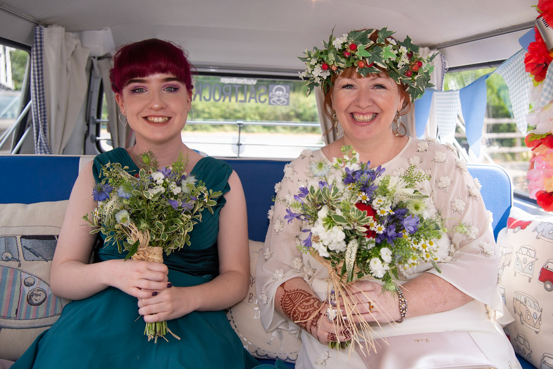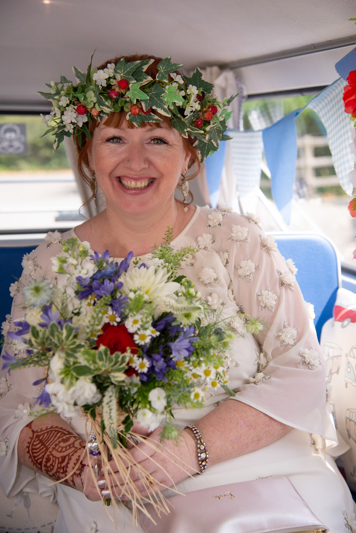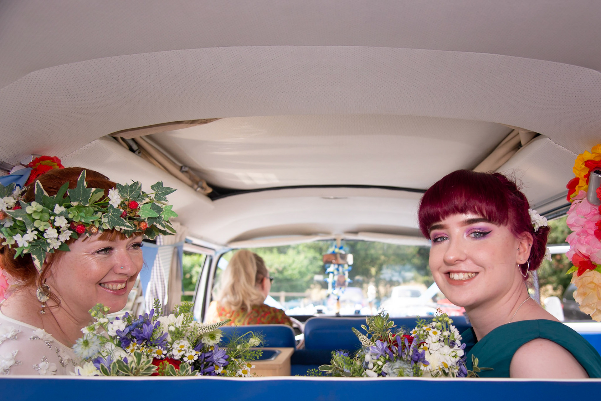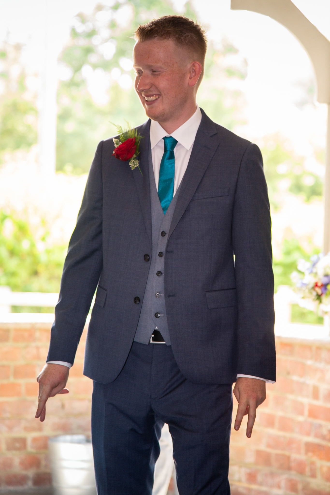 Sally-Ann arriving at the hall walking down the aisle to meet Paddy. The handfasting ceremony and Mike playing during the service.