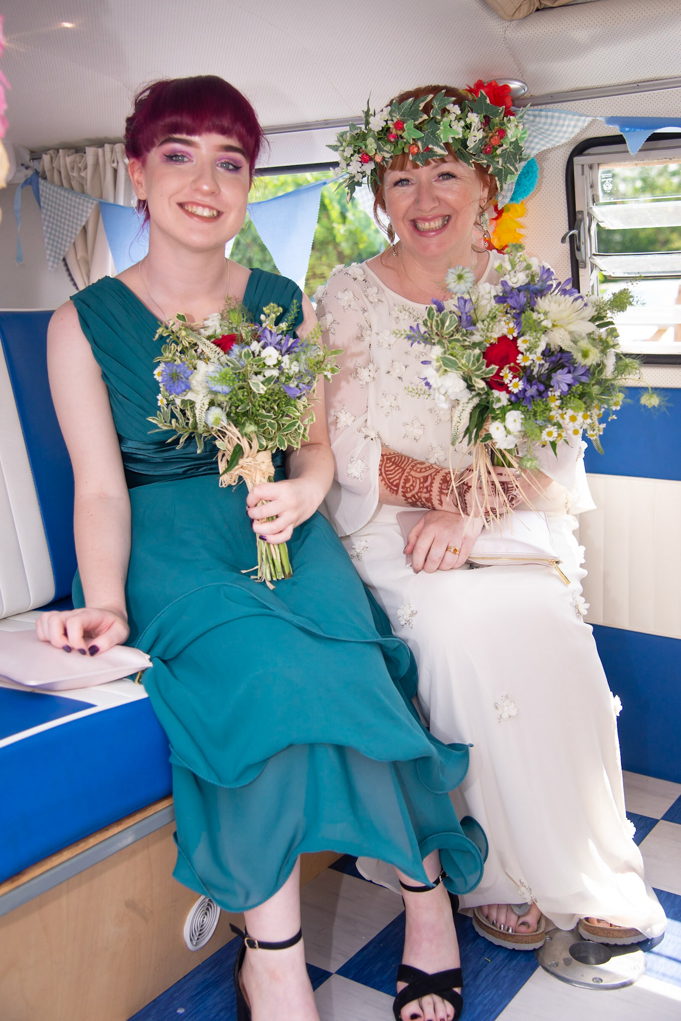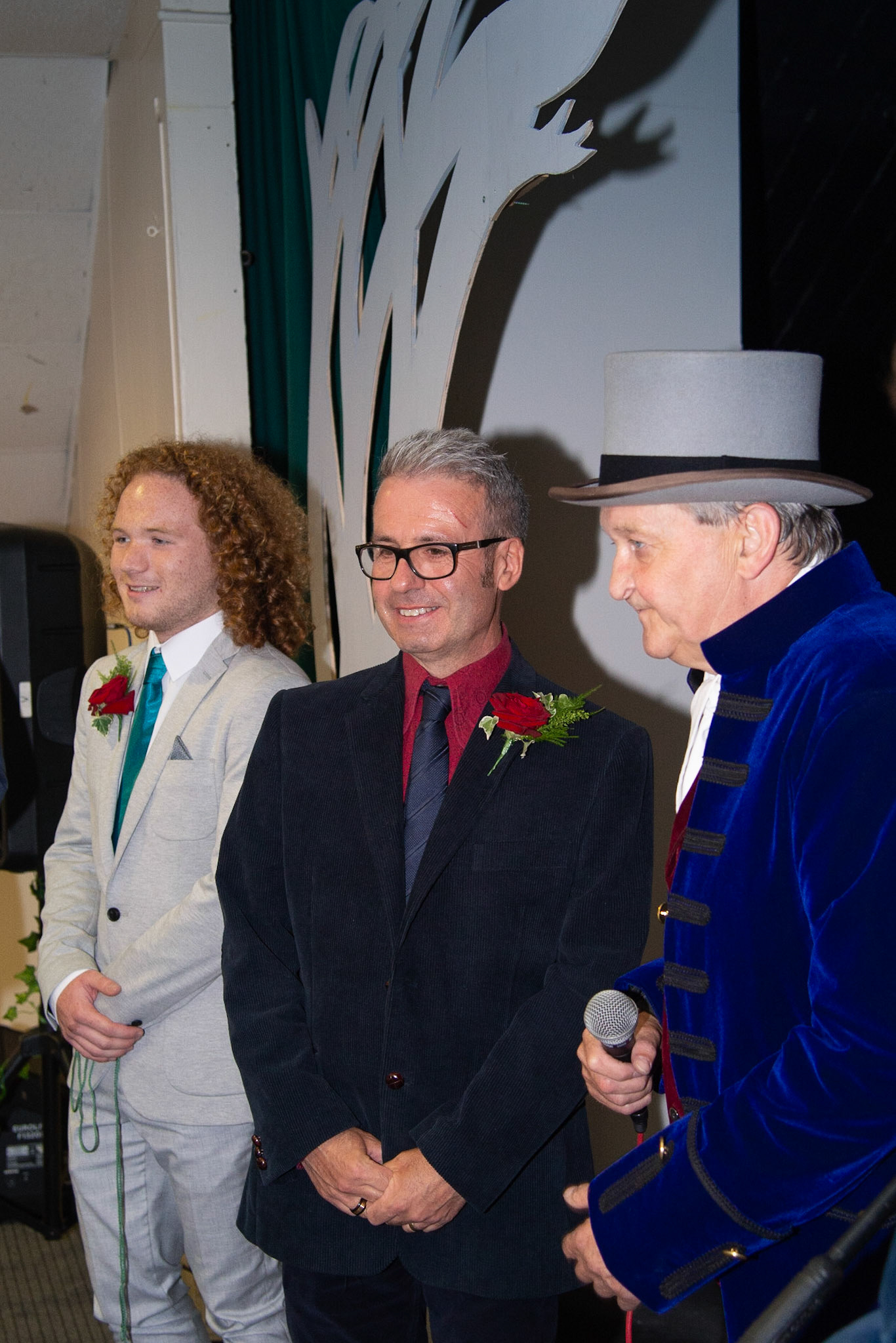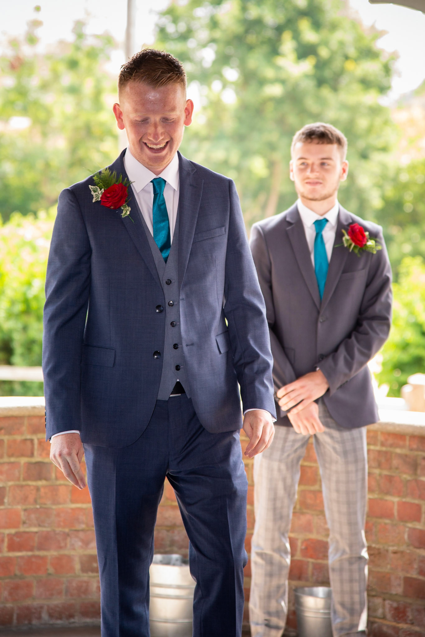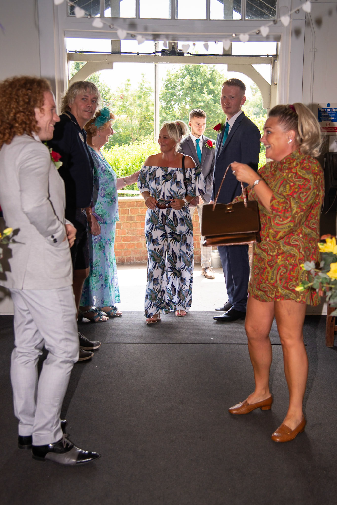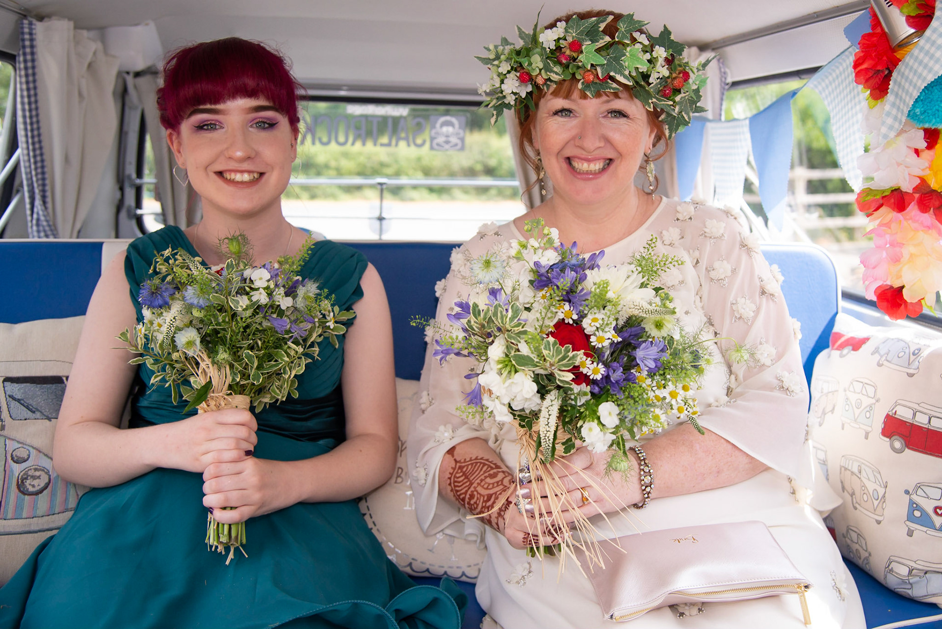 Sally-Ann arriving at the hall walking down the aisle to meet Paddy. The handfasting ceremony and Mike playing during the service.
