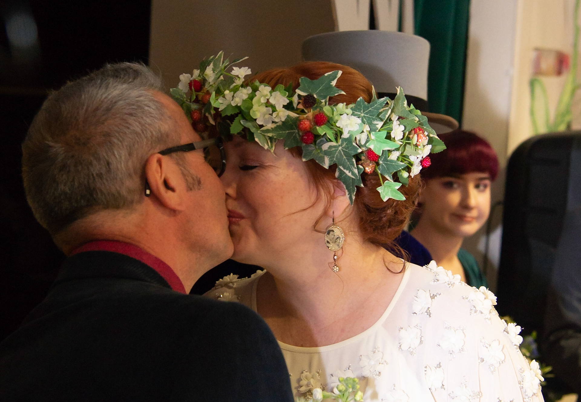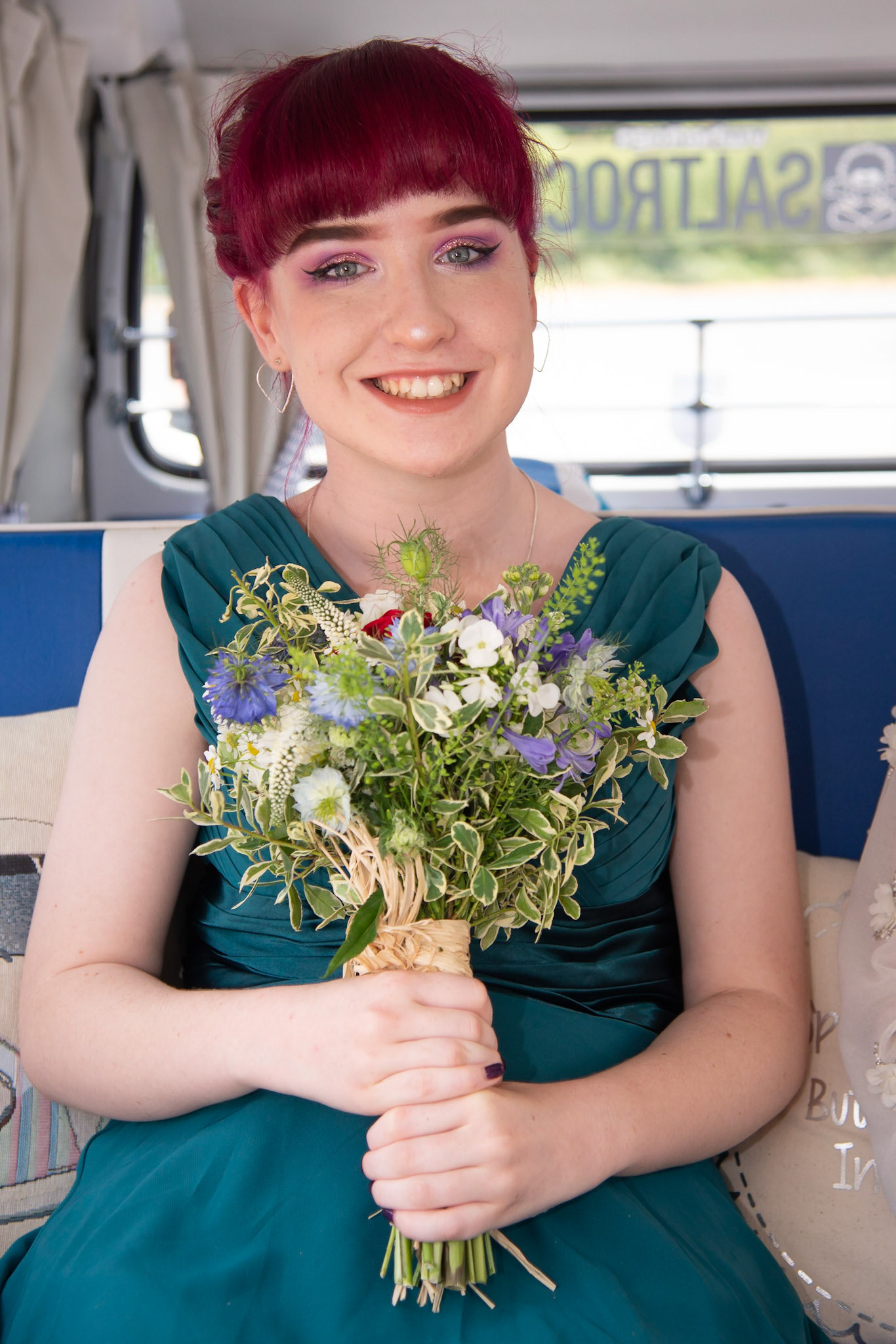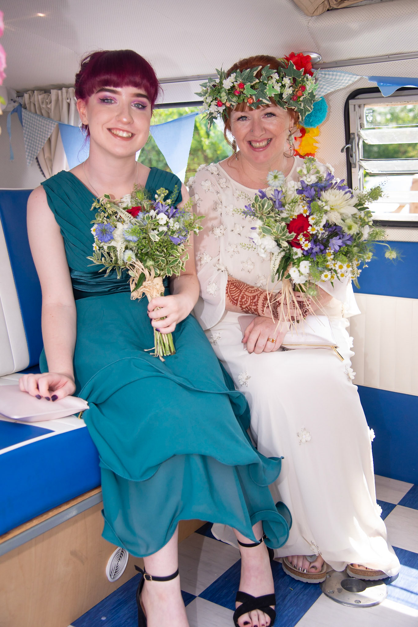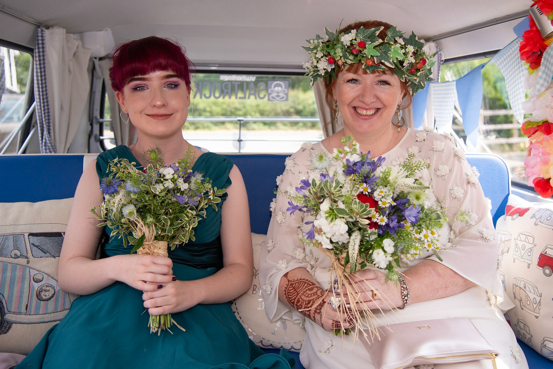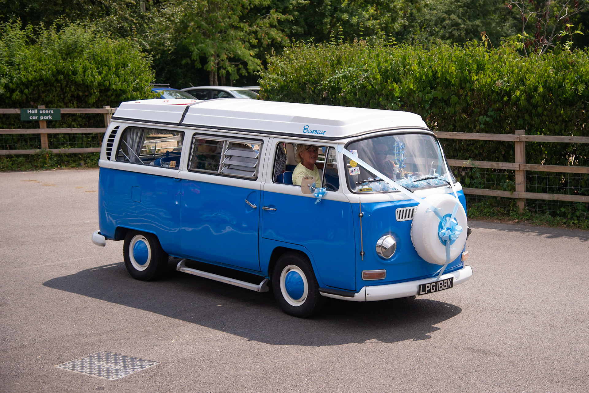 Sally-Ann arriving at the hall walking down the aisle to meet Paddy. The handfasting ceremony and Mike playing during the service.